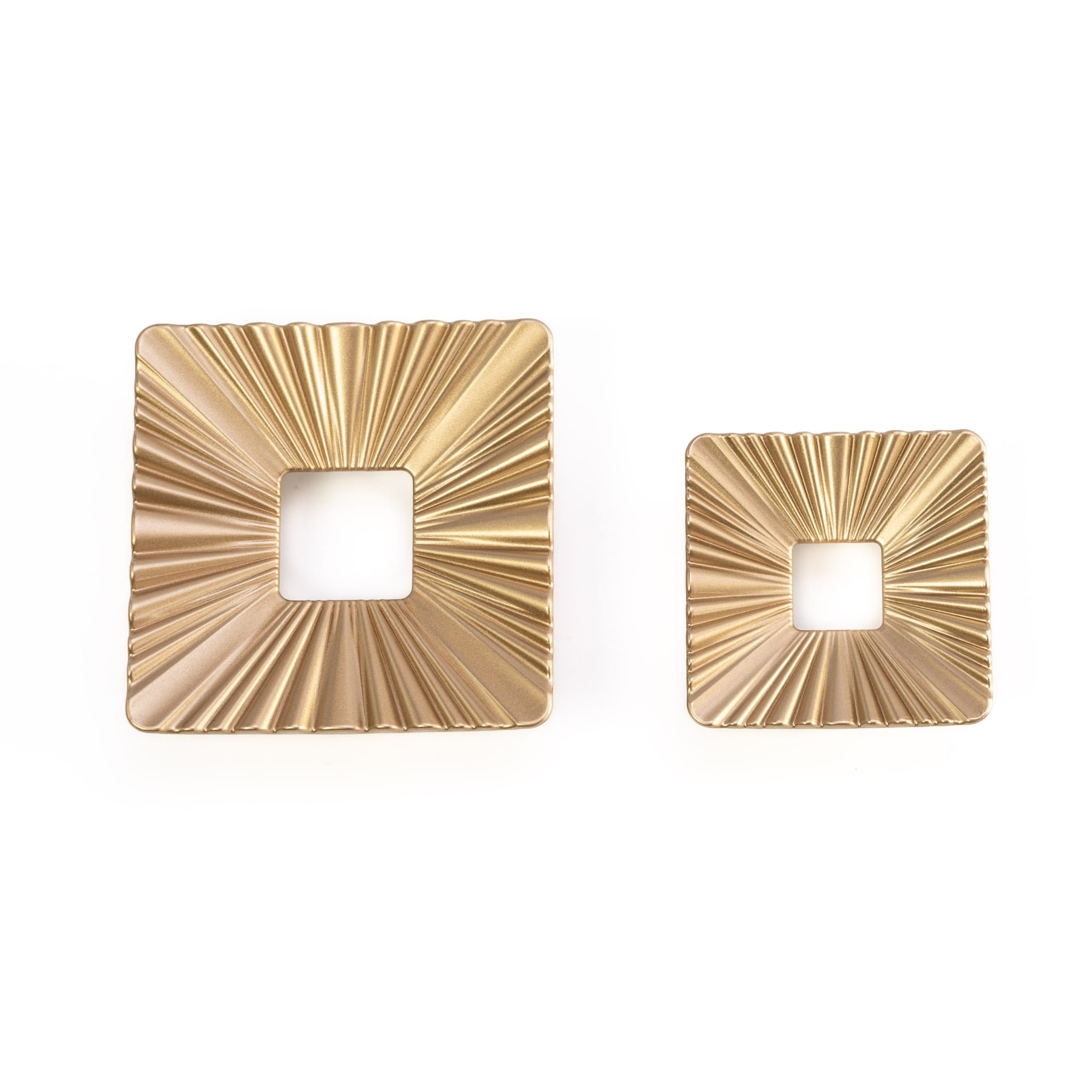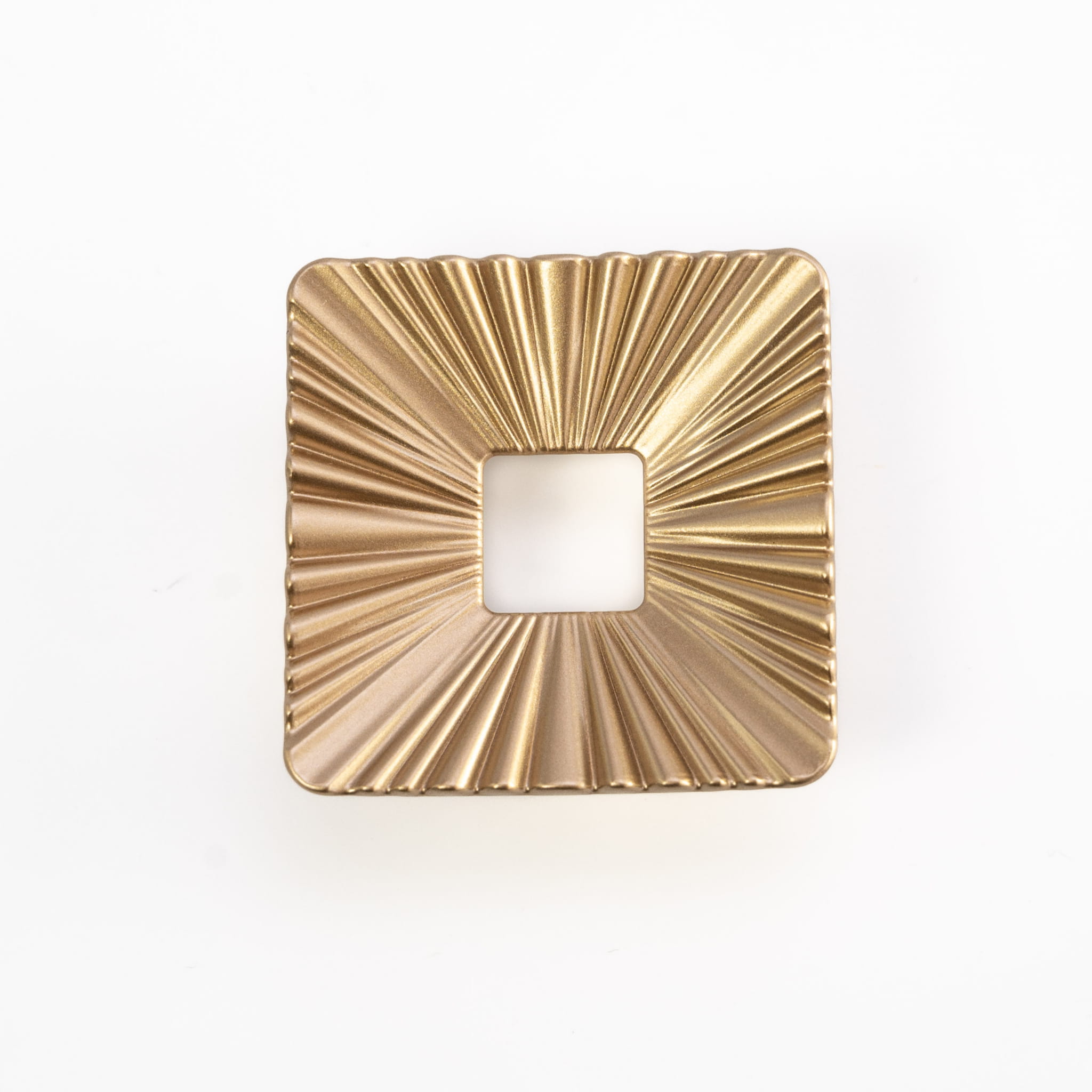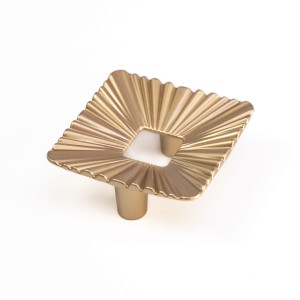 Ozdobna gałka meblowa zamknięta w kwadratowej formie.